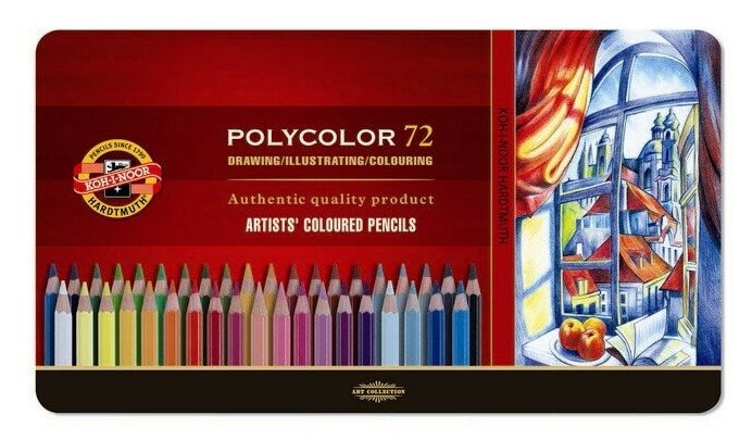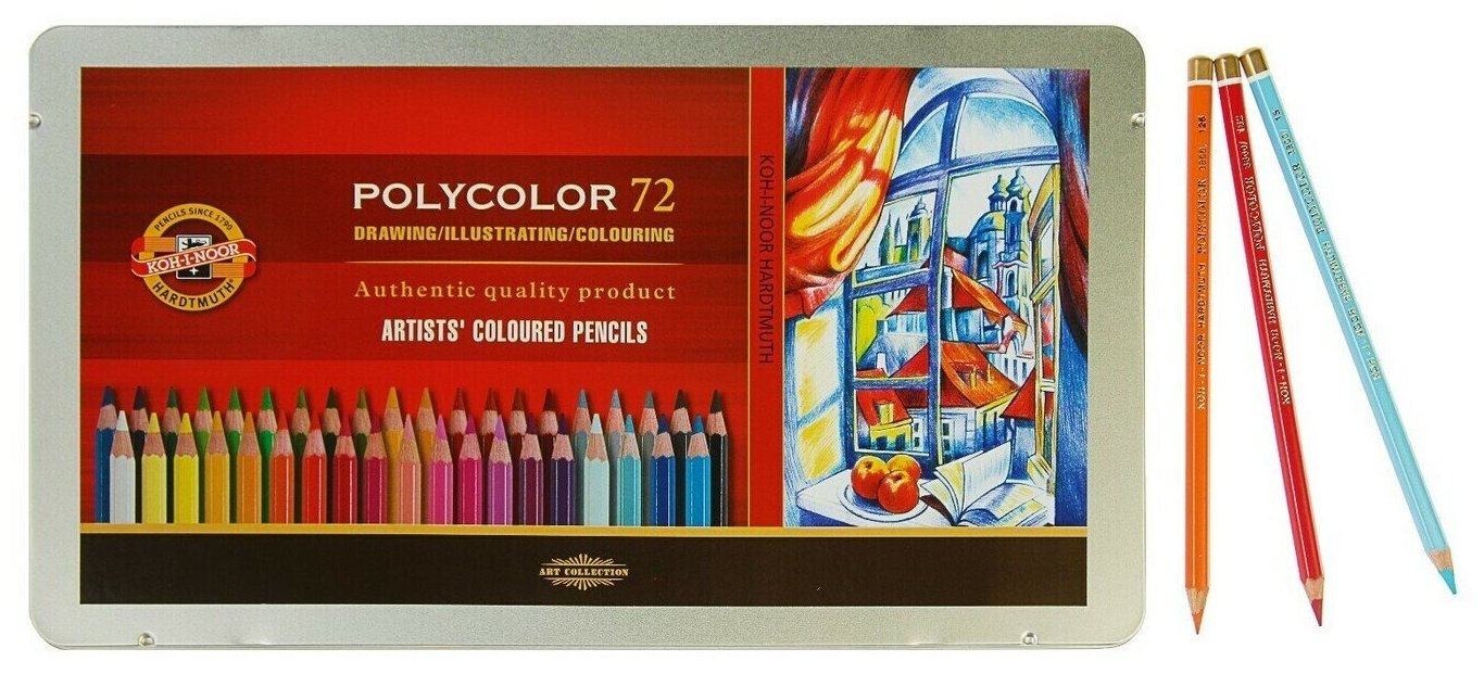 Карандаши цветные художественные KOH-I-NOOR Polycolor, 72 цвета, 3,8 мм, металлическая коробка, 3827072001PL
