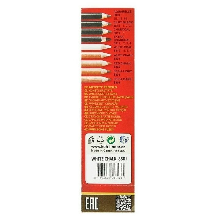Уголь для рисования Карандаш меловой KOH-I-NOOR, 1 шт., "Gioconda", белый, 8801001001KS
