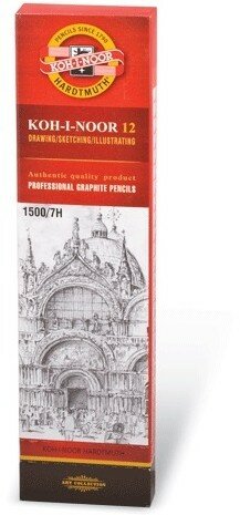Карандаш чернографитный KOH-I-NOOR 1500, 1 шт., 7H, корпус желтый, заточенный, 150007H01170 Комплект - 12 шт.