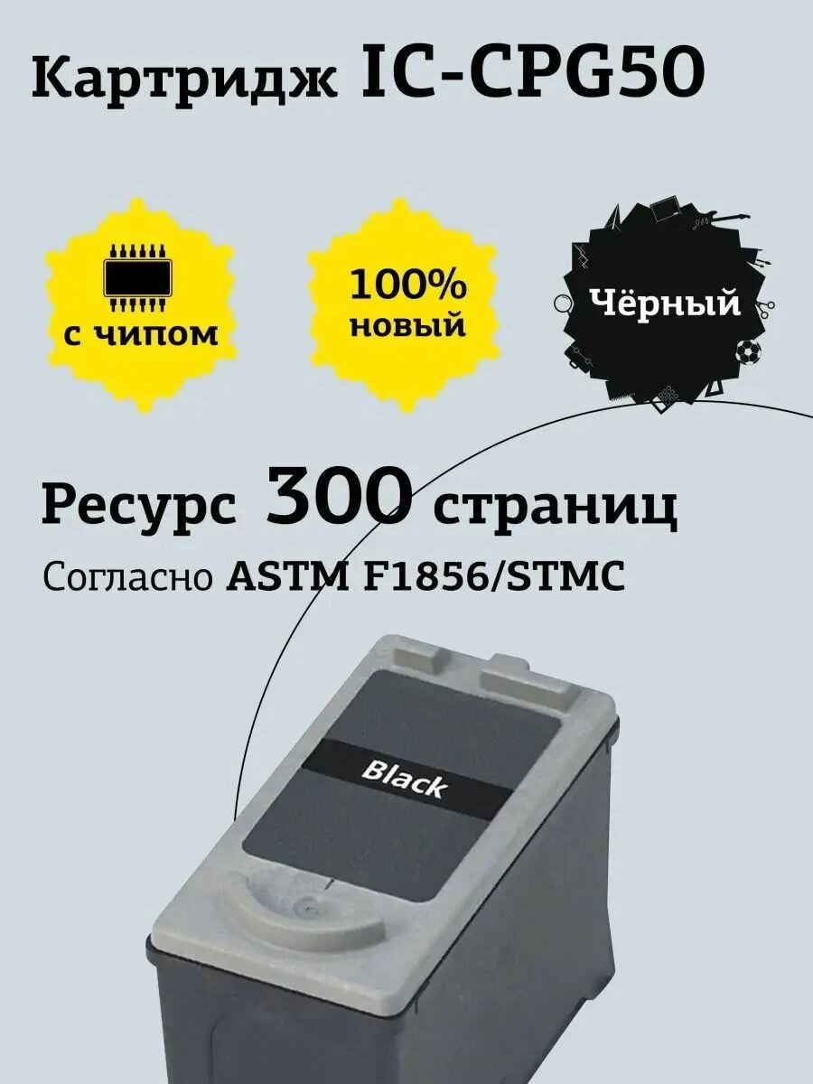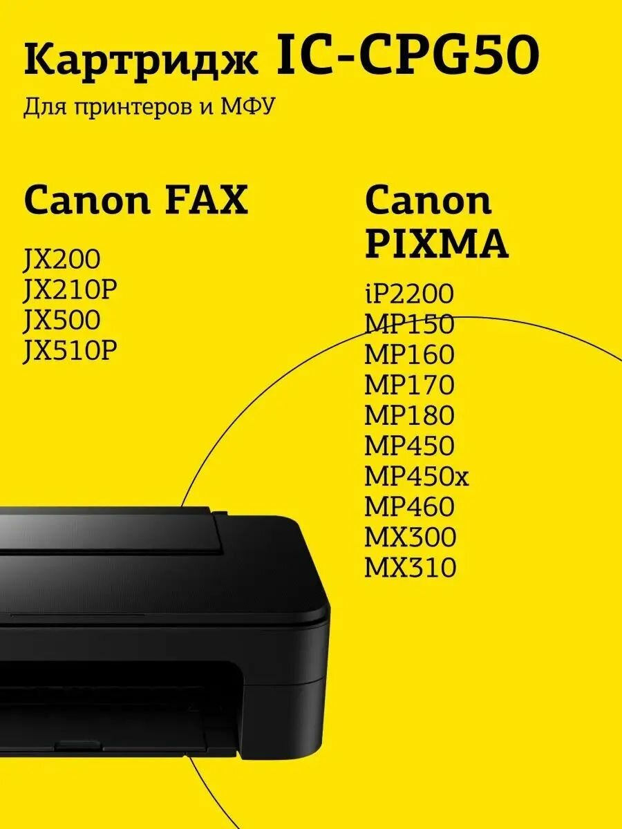 IC-CPG50 Картридж для Canon PIXMA iP2200, MP150, 450, 460, MX300, 310, FAX-JX200, 210P, 500, 510P, черный