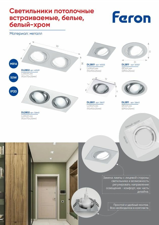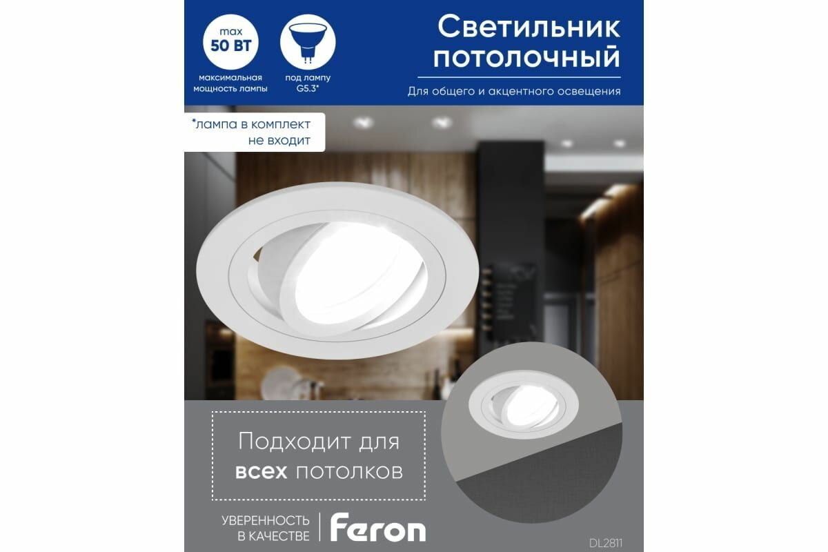 Светильник встраиваемый DL2811 потолочный MR16 G5.3 белый, FERON 40527 (1 шт.)