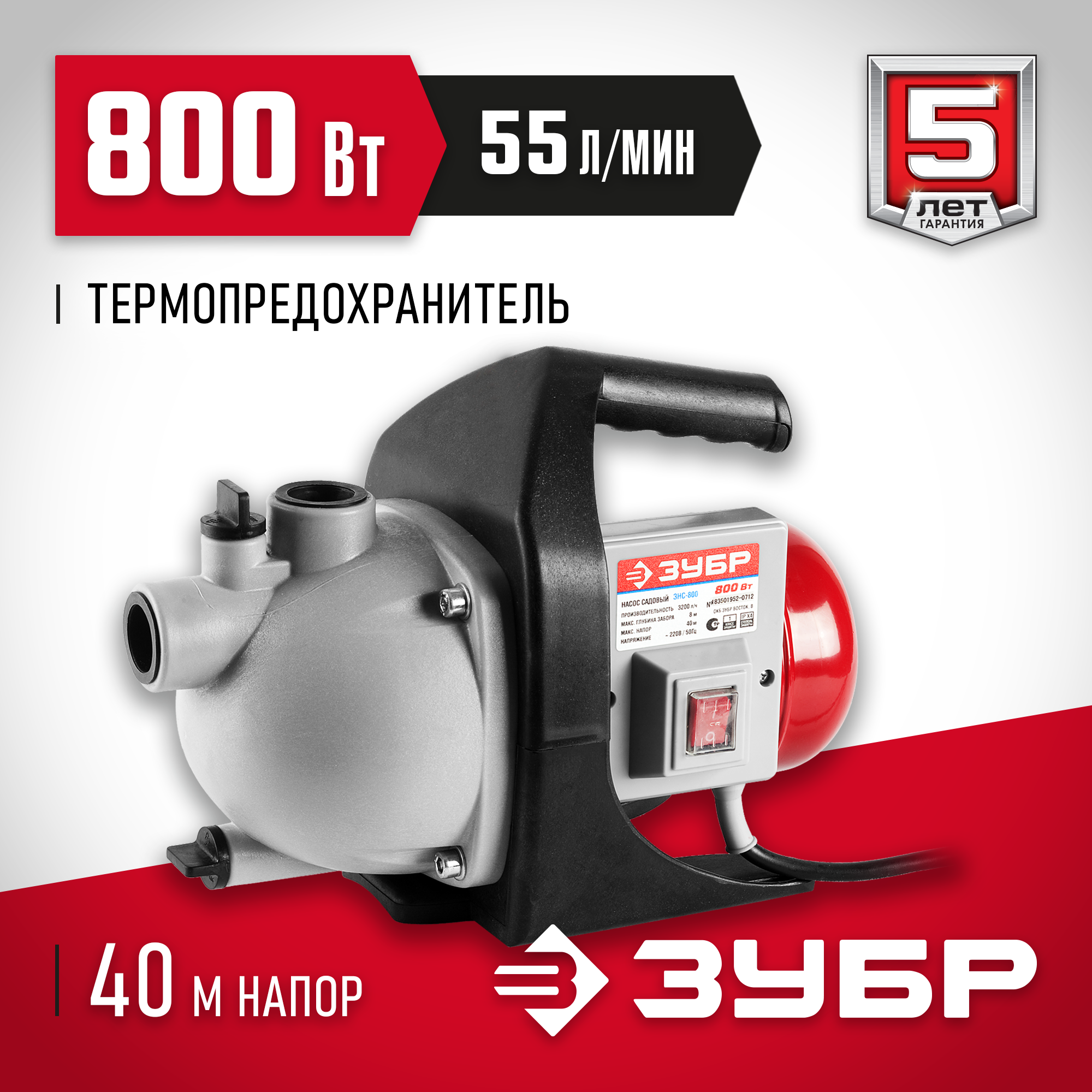 Поверхностный насос ЗУБР, 800 Вт