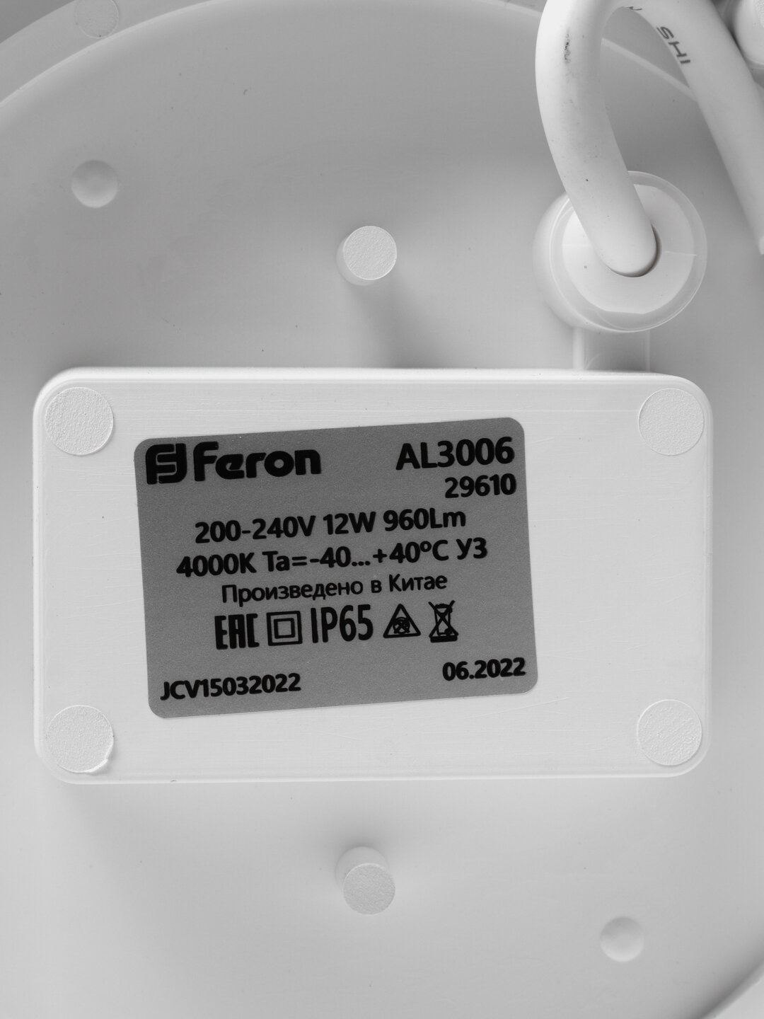 Светильник светодиод, Feron, AL3006, 12 Вт, 4000 К, 960 Лм, IP65, пылевлагостойкий, белый свет, плас