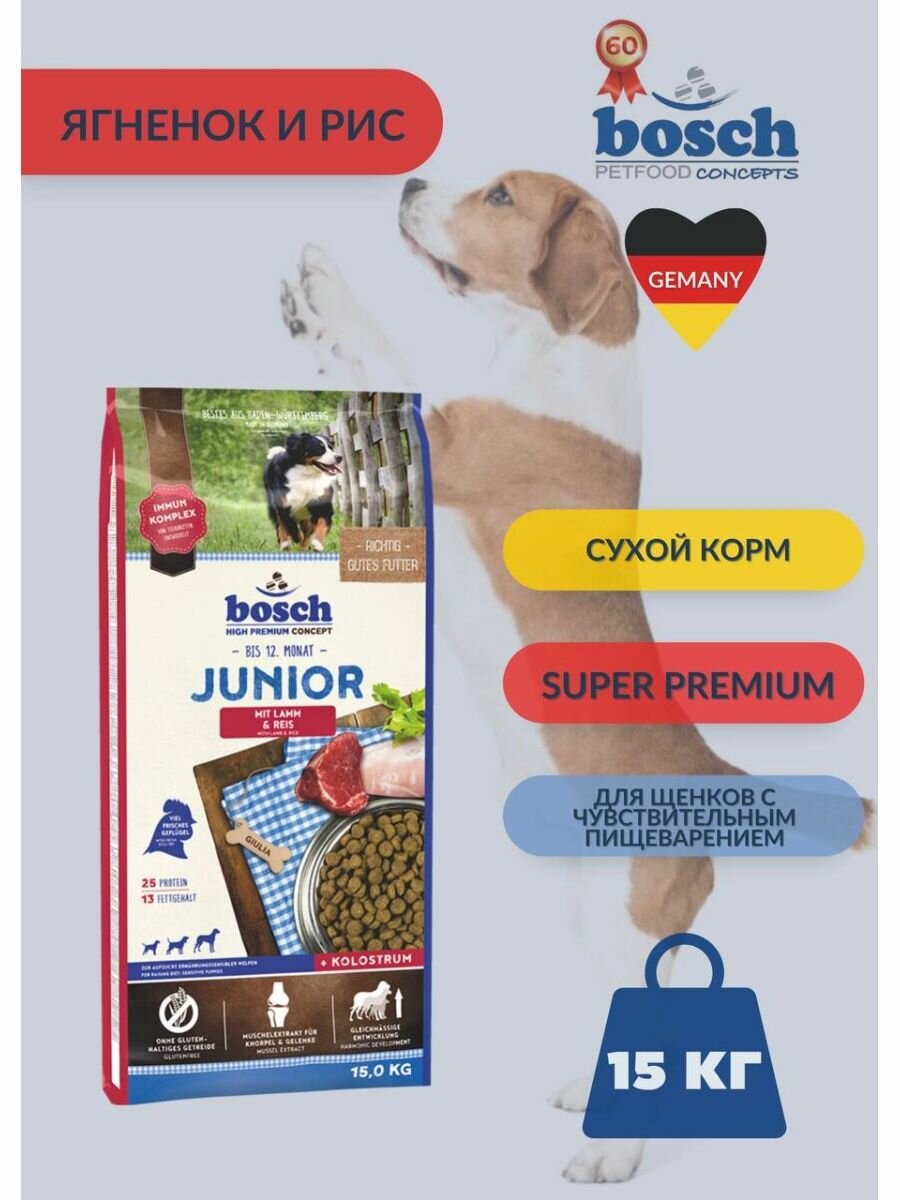 Сухой корм Bosch Junior для щенков всех пород с ягненком и рисом 15 кг