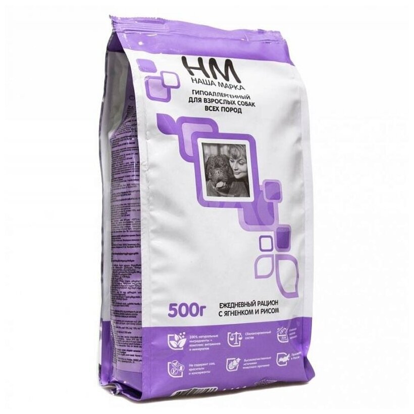 Корм Наша Марка для собак, гипоаллергенный, с ягненком и рисом, 500 г