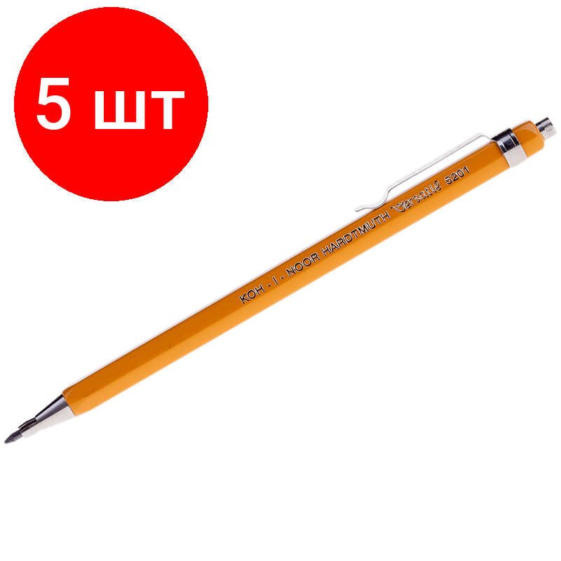 Купить Комплект 5 шт, Карандаш цанговый Koh-I-Noor "Versatil" 2мм, желтый корпус, металл. клип