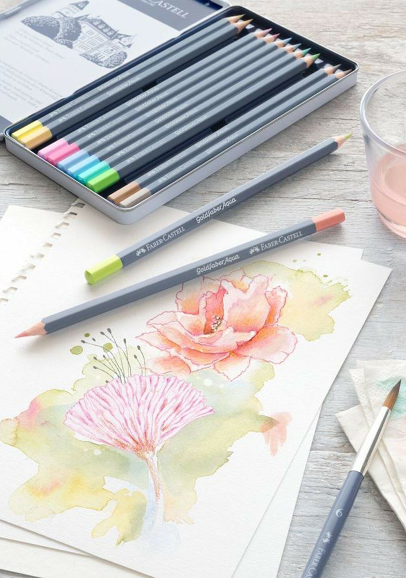 Карандаши акварельные Faber-Castell Goldfaber Aqua, 12 цветов, Pastel, в металлической коробке