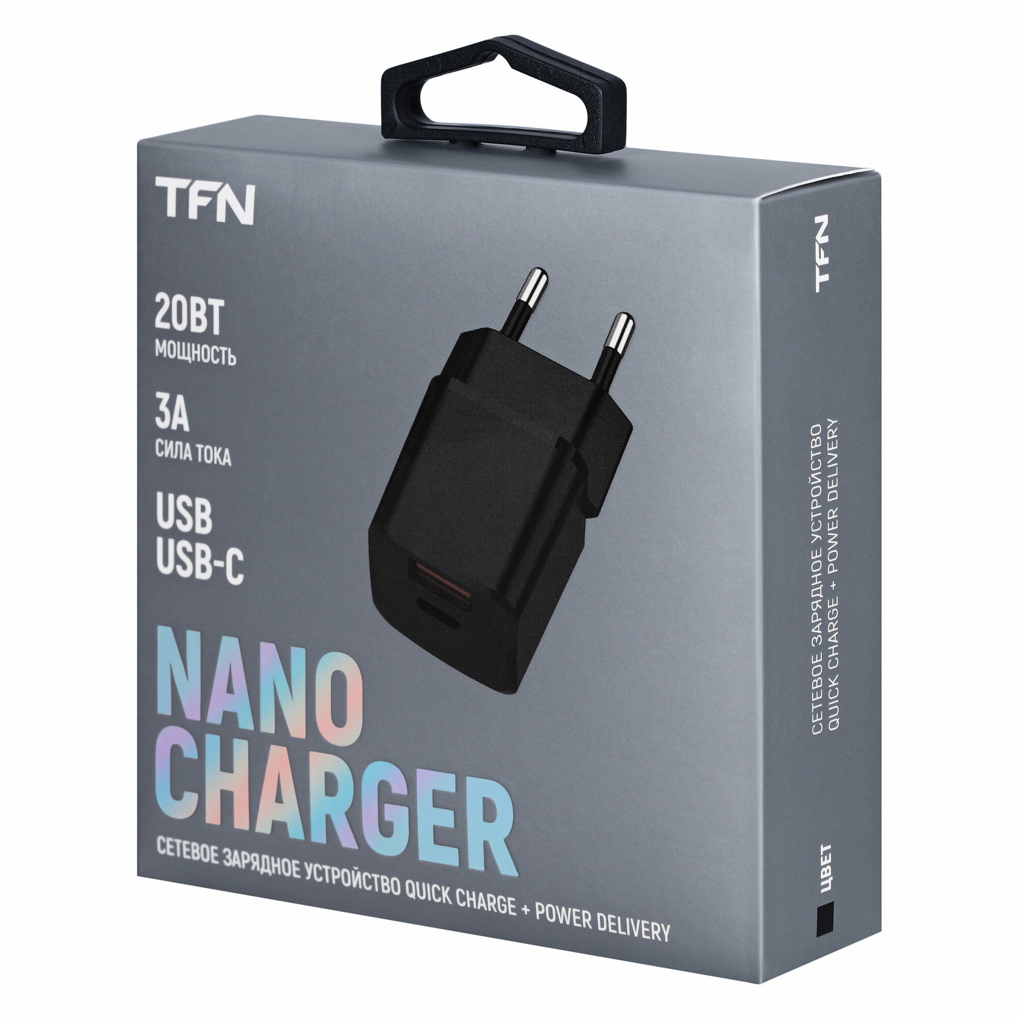 Сетевое зарядное устройство TFN nano TypeC PD 20W black без кабеля зарядка для смартфона зарядка на андроид