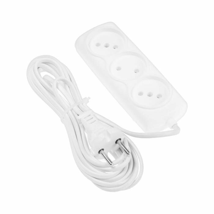 Удлинитель 3 розетки, 5 м, 6 А, 1300 Вт, ШВВП 2х0.5 мм2, без з/к, белый 5350219