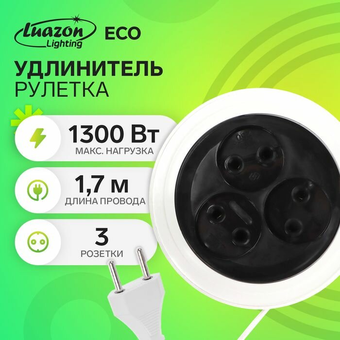 Удлинитель Luazon Lighting, 3 розетки, 1,8 м, 10 А, 2200 вт