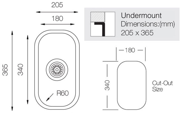 Мойка для кухни TOPZERO Undermount (D180. G8K) Сталь Нержавеющая