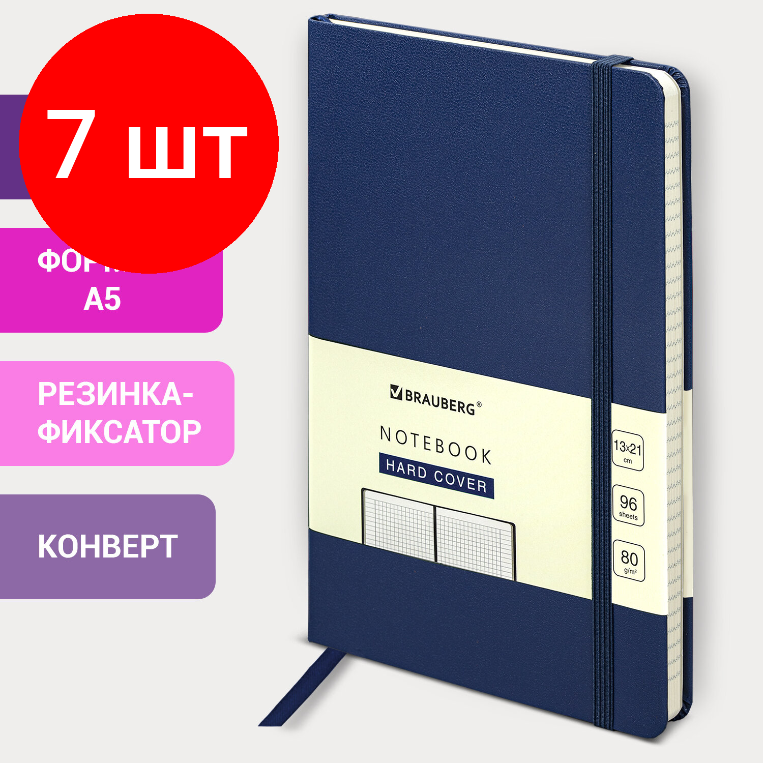 Купить Комплект 7 шт, Блокнот А5 (130х210 мм), BRAUBERG ULTRA, балакрон, 80 г/м2, 96 л., клетка, темно-синий, 113033