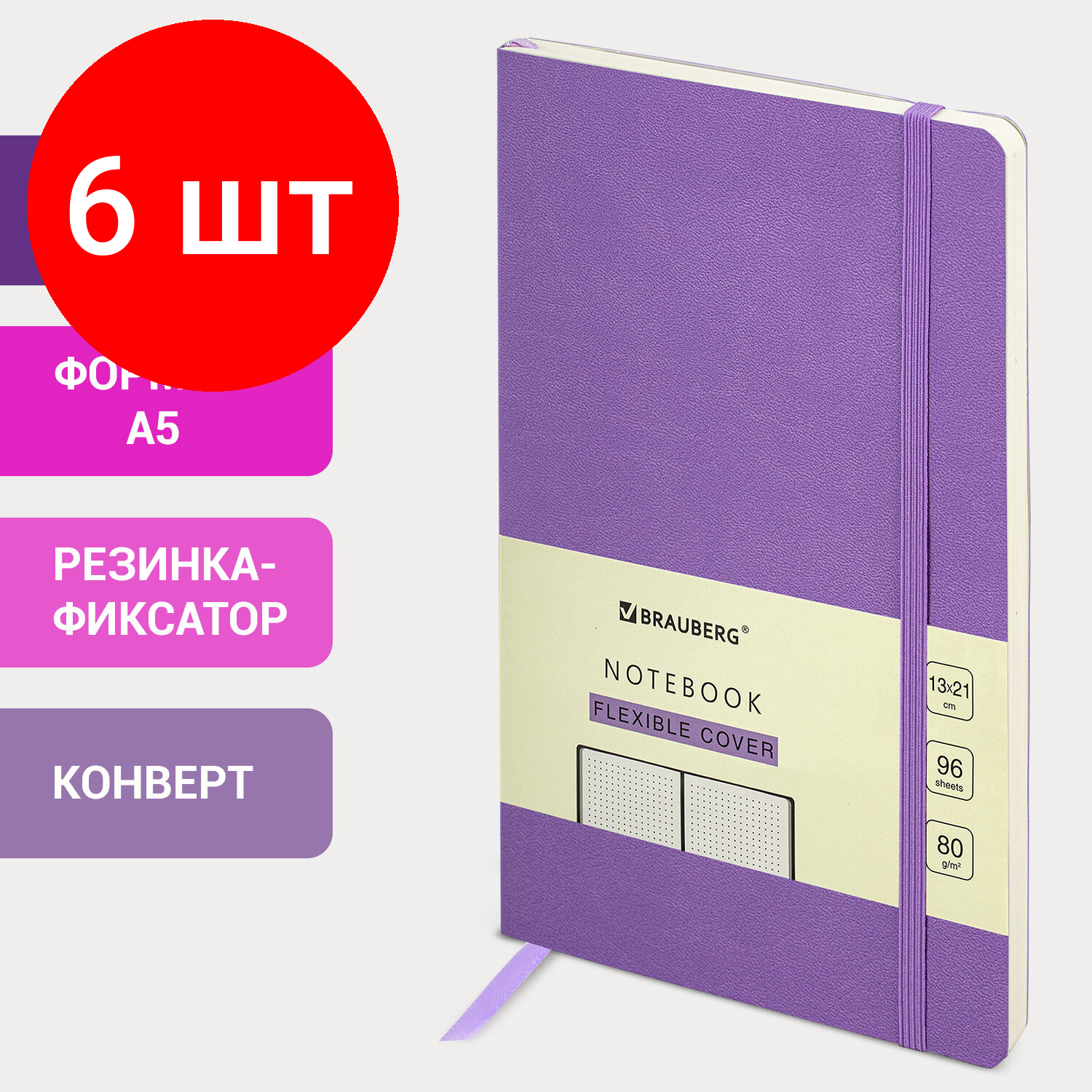 Купить Комплект 6 шт, Блокнот А5 (130х210 мм), BRAUBERG ULTRA, под кожу, 80 г/м2, 96 л., в точку, сиреневый, 113013