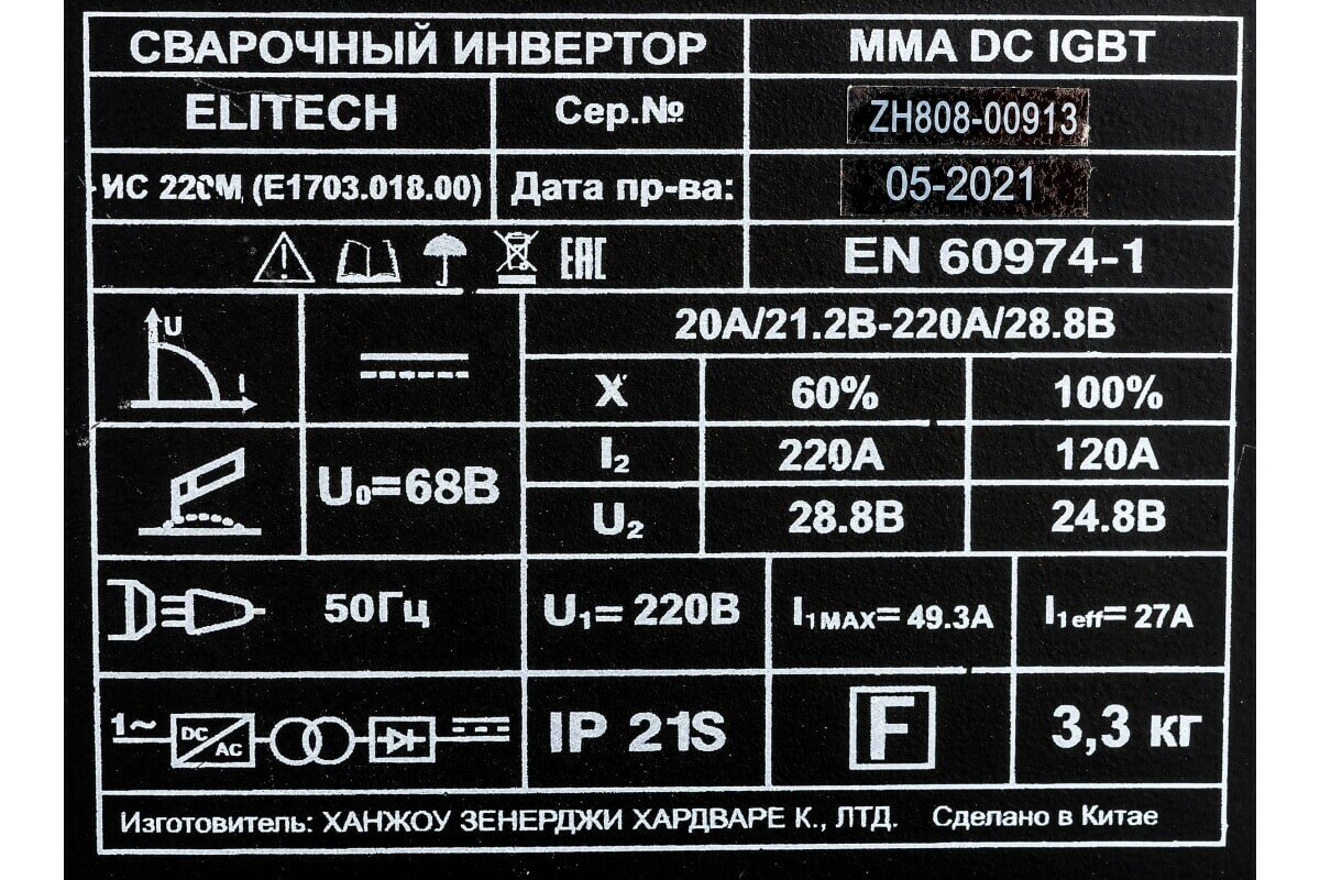 Ниже Вы можете прочитать отзывы на Сварочный аппарат Elitech ИС 220М (E1703.018.00) инвертор MMA DC/TIG DC 7кВт, ознакомится с подробными характеристиками, посмотреть интересные обзоры и фотографии на Сварочный аппарат Elitech ИС 220М (E1703.018.00) инвертор MMA DC/TIG DC 7кВт.