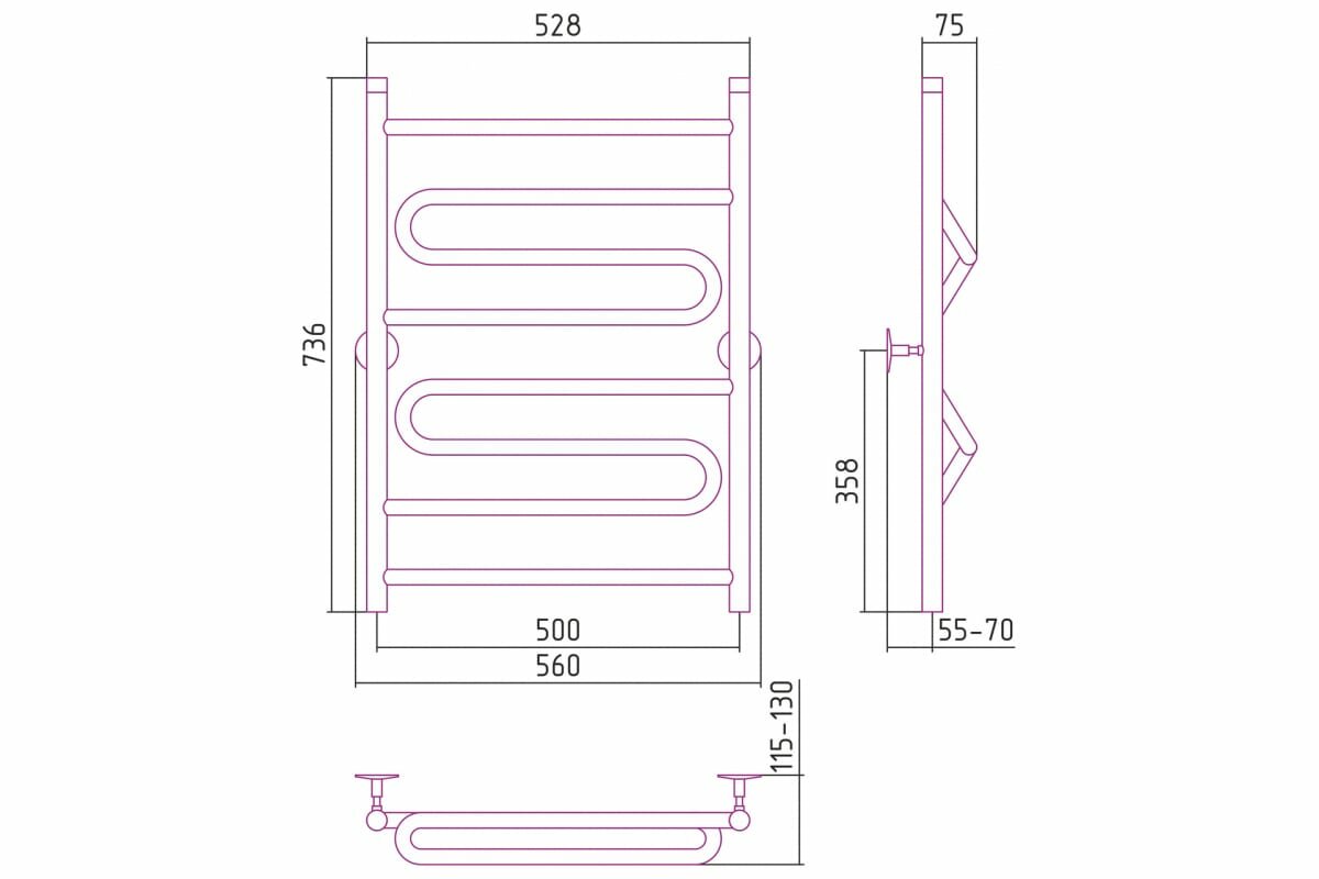 Полотенцесушитель водяной 719x560 Стилье Универсал-51 00651-8050