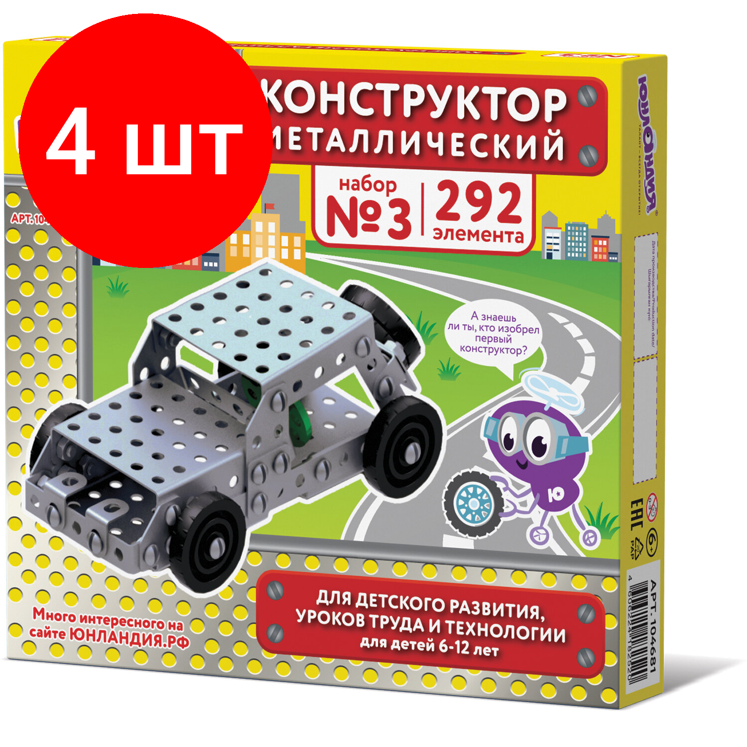Купить Комплект 4 шт, Конструктор металлический юнландия "Для уроков труда №3", развивающий, 292 элемента, 104681