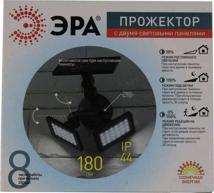 ЭРА ERAFS020-41 ЭРА Фасадный светильник с двумя световыми панелями на солнечной батарее,2х24LED,180lm (6