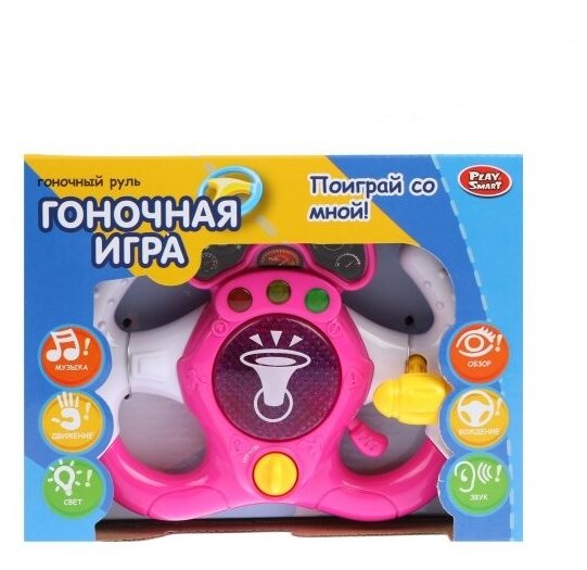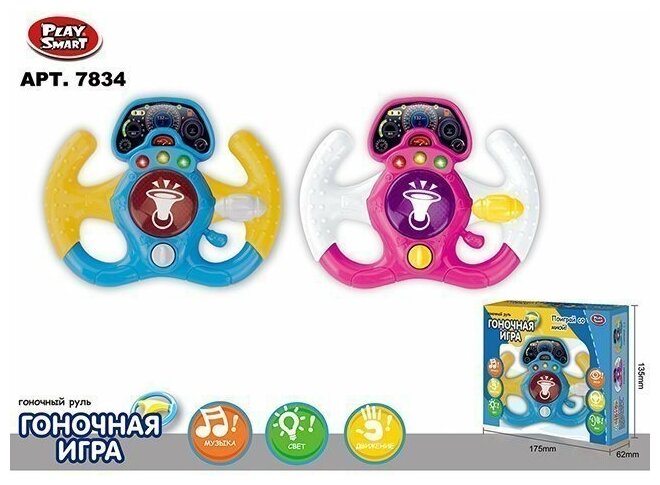 Развивающая детская музыкальная игрушка "Гоночный руль" (голубой) в коробке свет звук PLAY SMART 7834_1