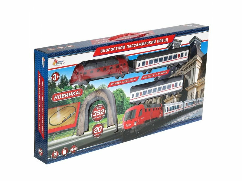 Железная дорога пассажирский поезд, длина пути 392 см, звуковые эффекты, на батарейках