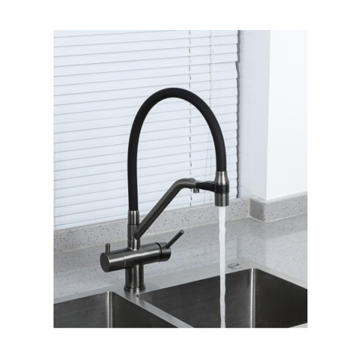 Смеситель для кухонной мойки Gappo G98-85 G4398-85 с гибким изливом и подключением фильтра питьевой воды, сатин, черный
