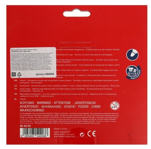 554203 Фломастеры Faber-Castell "Замок", 36цв., смываемые, картон, европодвес