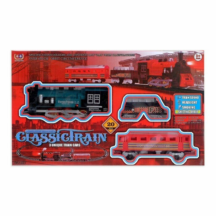 Железная дорога КНР "Классический поезд" свет и звук, с дымом, работает от батареек (ZY560745) интересное: