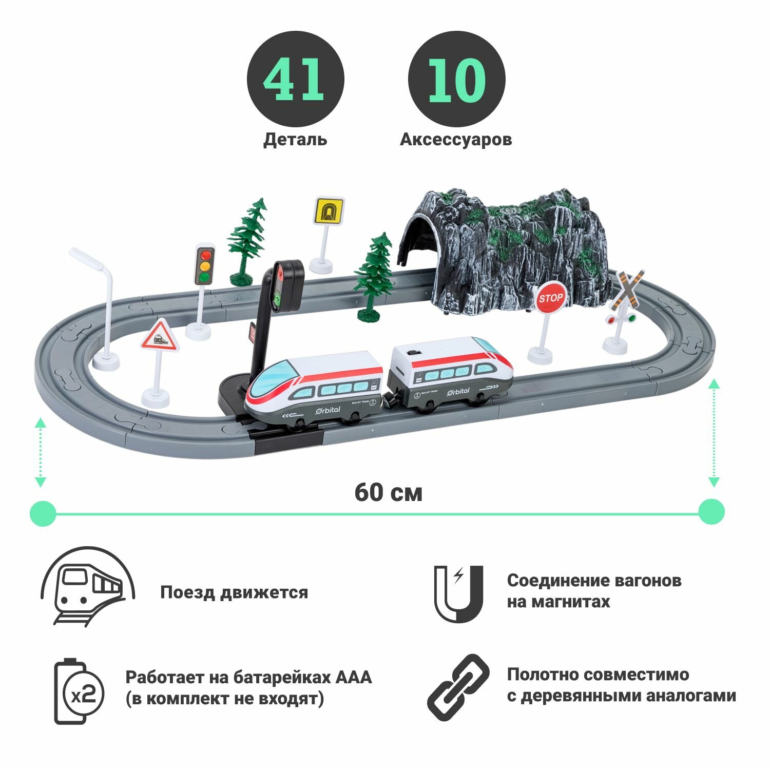 Железная дорога для детей "Мой город, 41 предмет", на батарейках
