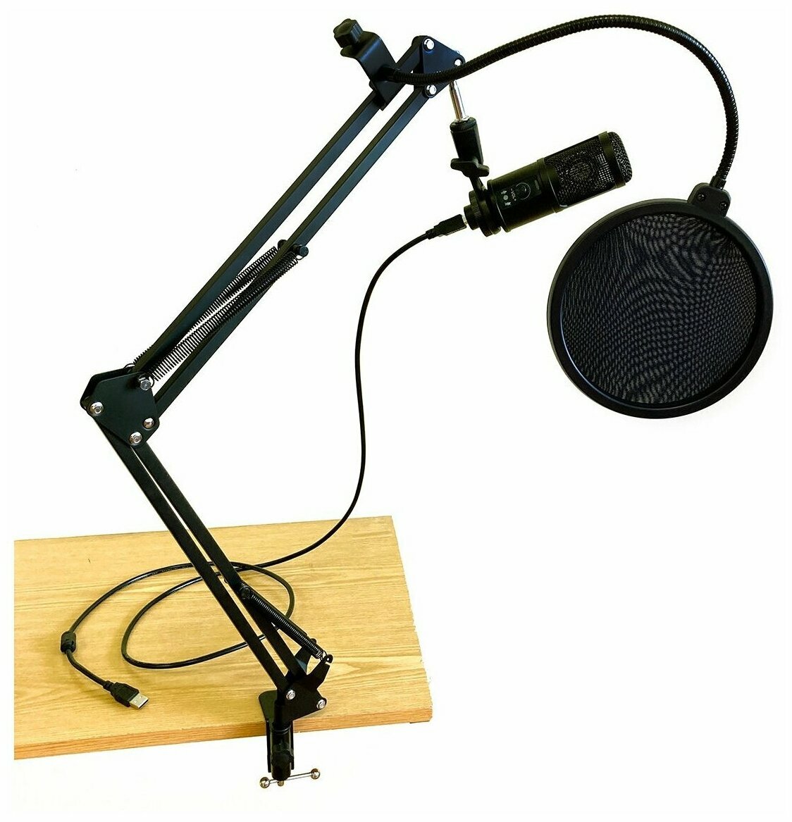 | Подробная комплектация | USB-микрофон, защита от ветра, поп-фильтр, кабель USB Am – USB В, металлический штатив (пантограф), руководство пользователя |