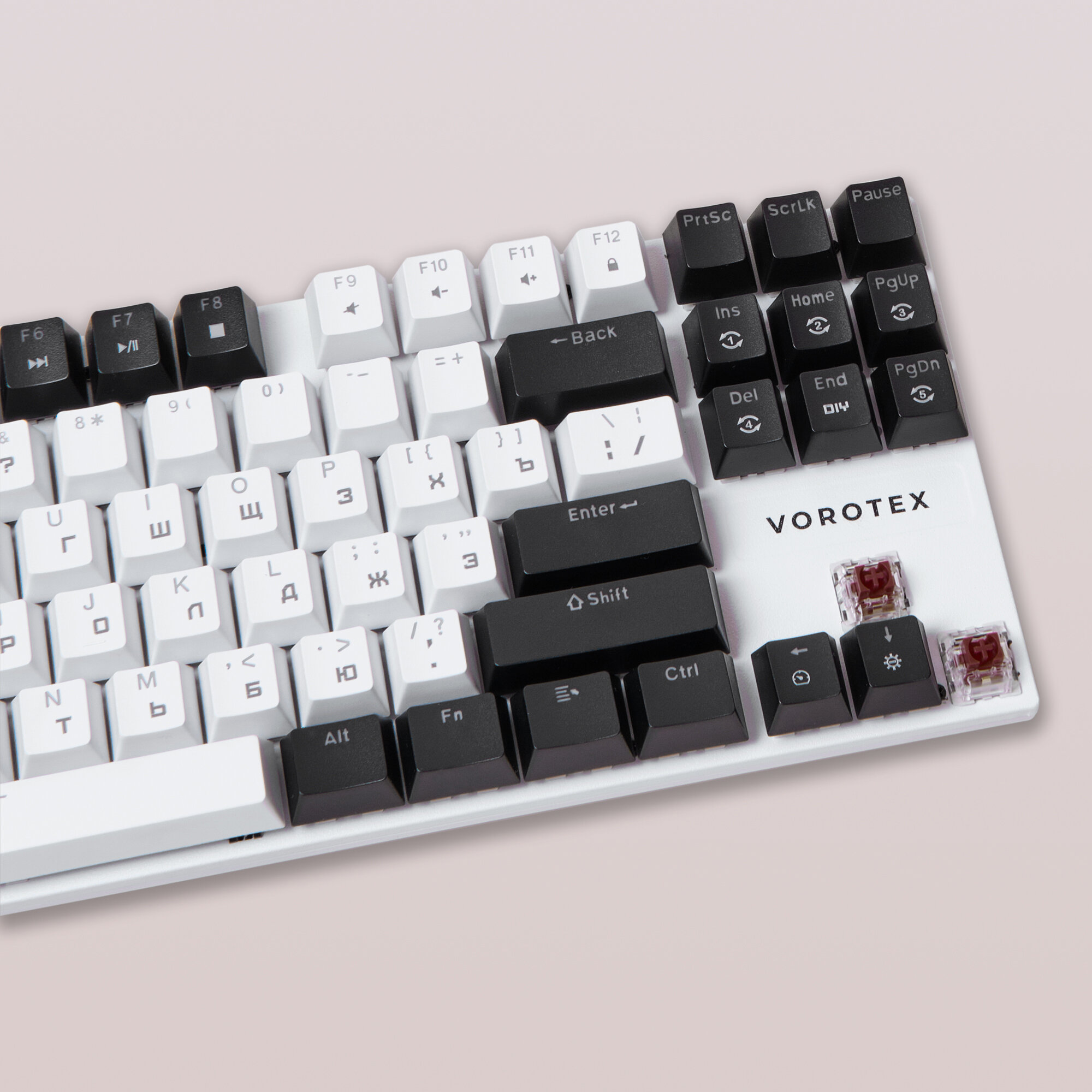 Игровая клавиатура VOROTEX K87S Red Switch, белый/черный, русская