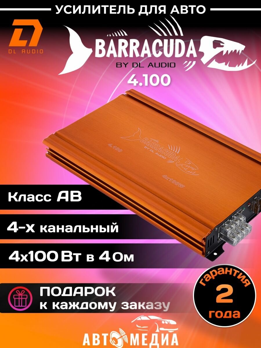 Усилитель автомобильный 4 канальный DL Audio Barracuda 4.100 звука для машины