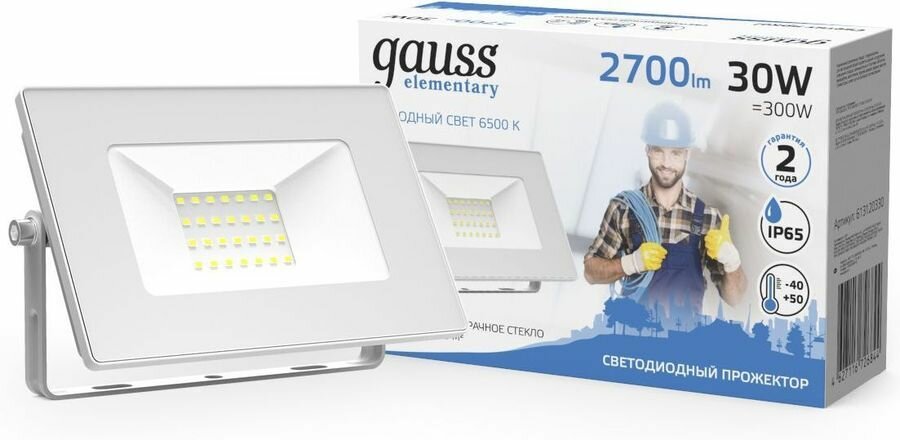 Прожектор Gauss Elementary 30W 2700lm 6500K 200-240V IP65 белый LED 1/10 SQ613120330