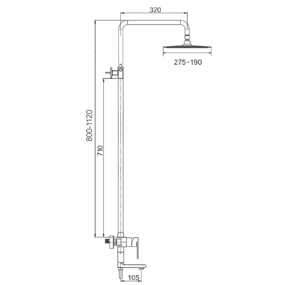 | Комплектация | душевая штанга / кронштейн для верхнего душа / верхний душ / ручная лейка / держатель ручной лейки / смеситель с изливом / шланг / гигиенический душ |