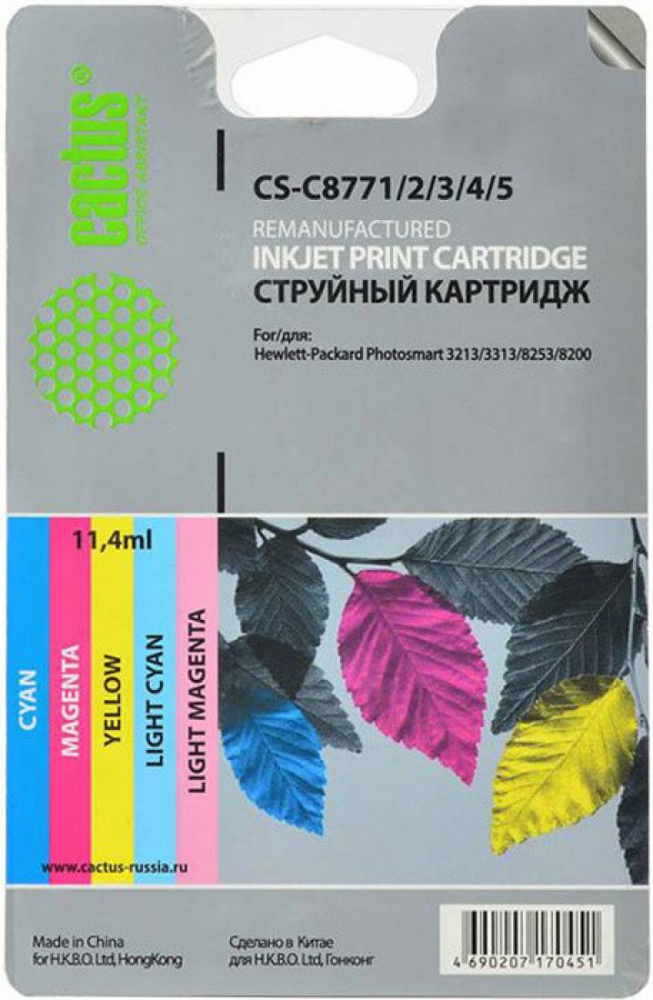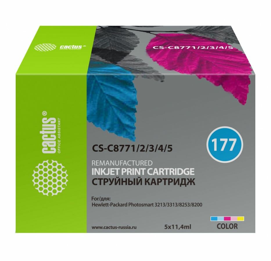 Картридж струйный Cactus CS-C8771/2/3/4/5 многоцветный для №177 HP PhotoSmart 3213/3313/8253 (11,4ml
