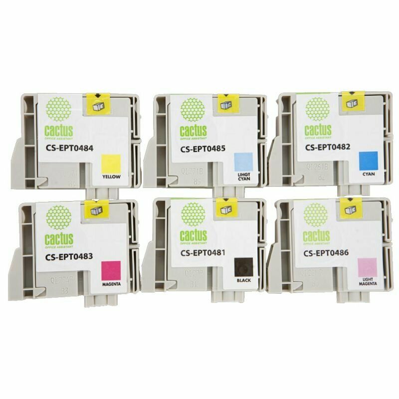 Набор картриджей Cactus CS-EPT0487, для Epson, черный/голубой/пурпурный/желтый/светло-голубой/светло-пурпурный