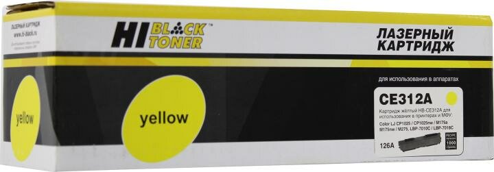 Совместимый тонер-картридж Hi-Black (HB-CE312A) для HP CLJ CP1025/1025nw/Pro M175, № 126A, Y, 1K.