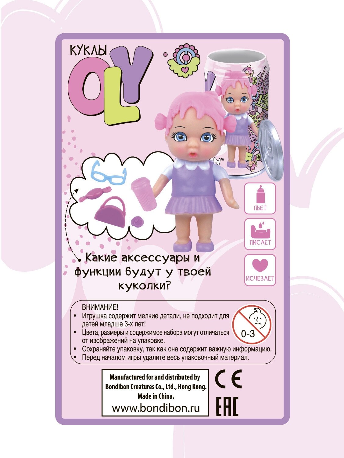 Набор игровой Bondibon куколка Oly в шапочке-ушанке с животным и аксессуарами в банке 6,3х вв3828 - 1 штука