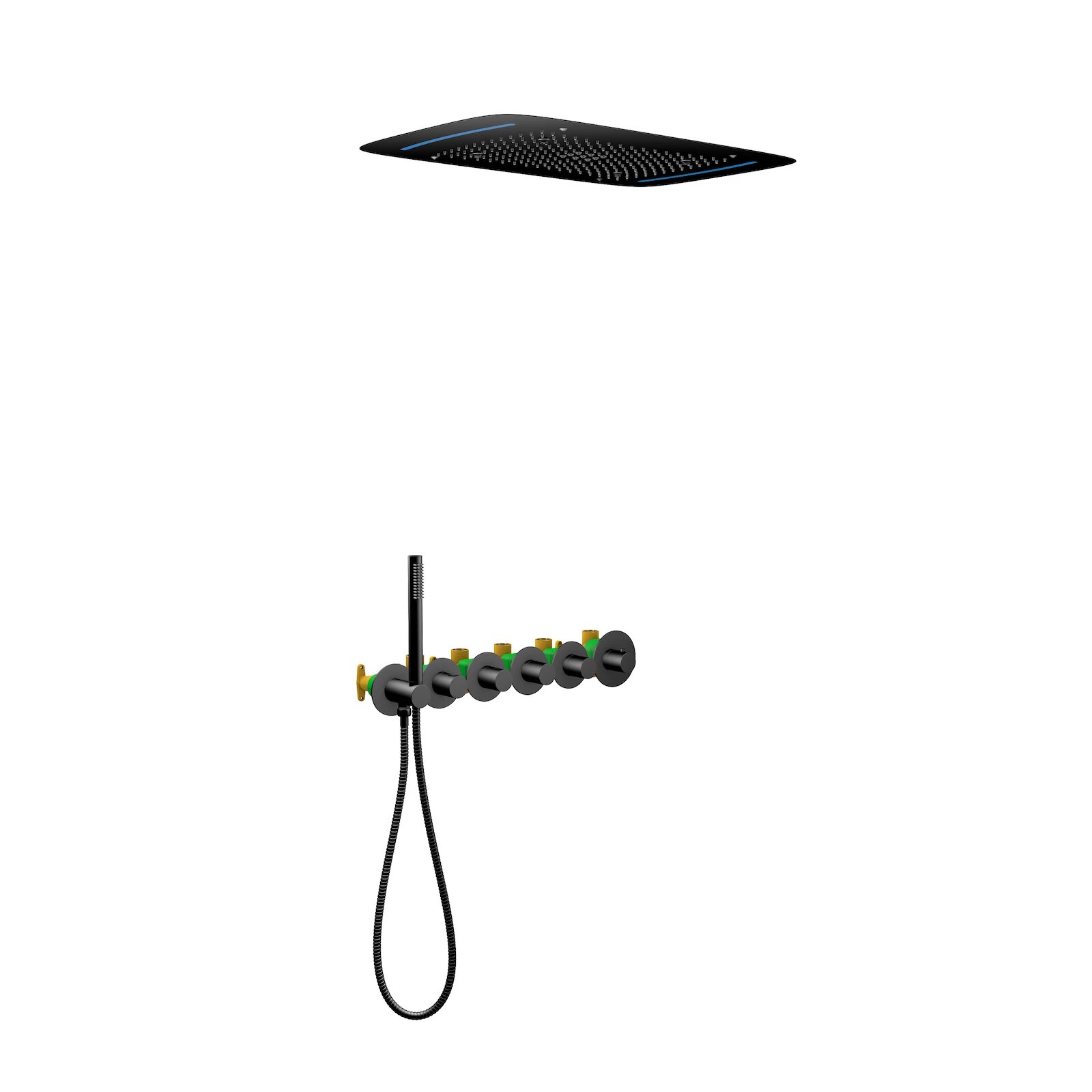 | Дополнительная информация | Встраиваемый блок управления душевой системой (латунный) - 1 шт. Корпус потолочного душа (латунный) - 1 шт. Душевая панель (латунная) 680*430 мм - 1 шт. Винты с гайками для крепления подвесных кронштейнов (комплект) - 4 шт. Держатель ручной лейки с подключением душа (латунный) - 1 шт. Подвесные кронштейны - 2 шт. Подводка к тропическому душу - 3 шт. Ручка дивертора - 4 шт. Ручка управления термостатом - 1 шт. Декоративные накладки с гильзами (комплект) - 6 шт. Ручная лейка (латунная) - 1 шт. Соединительная трубка для подключения ручного душа - 1 шт. Шланг душа 1,5 м - 1 шт. Блок управления подсветкой - 1 шт. Инвертор (преобразователь тока) - 1 шт. Т-образный соединитель проводов - 1 шт. Скрытый провод - 1 шт. Провод блока управления подсветкой - 1 шт. Инструкция - 1 шт. |