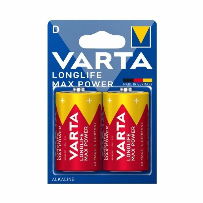 Батарейка VARTA LONGLIFE Max Power D, 2 шт.
