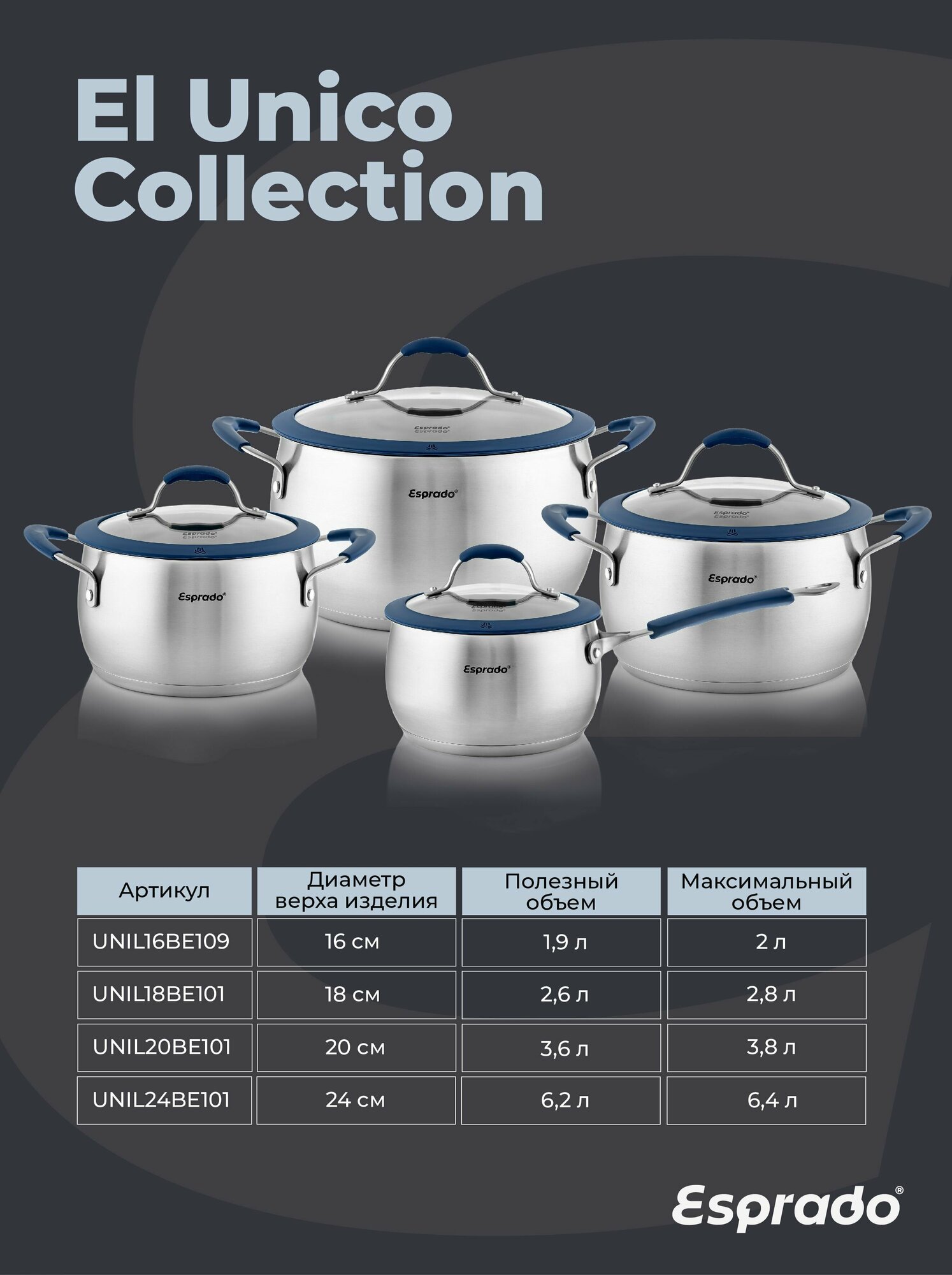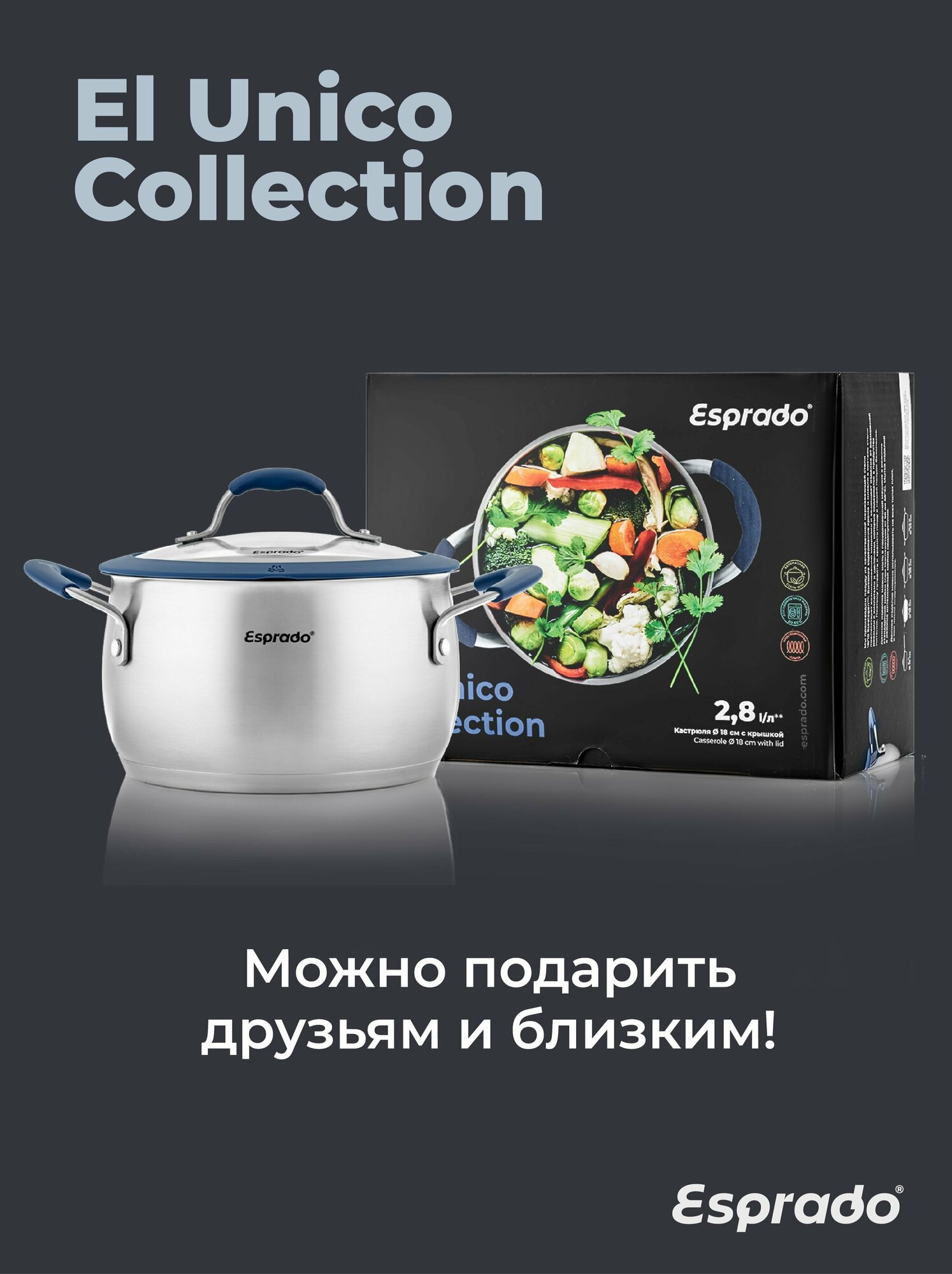Купить Кастрюля с крышкой Esprado El Unico 18x10,5 cм, 2,8 л, нержавеющая сталь UNIL18BE101
