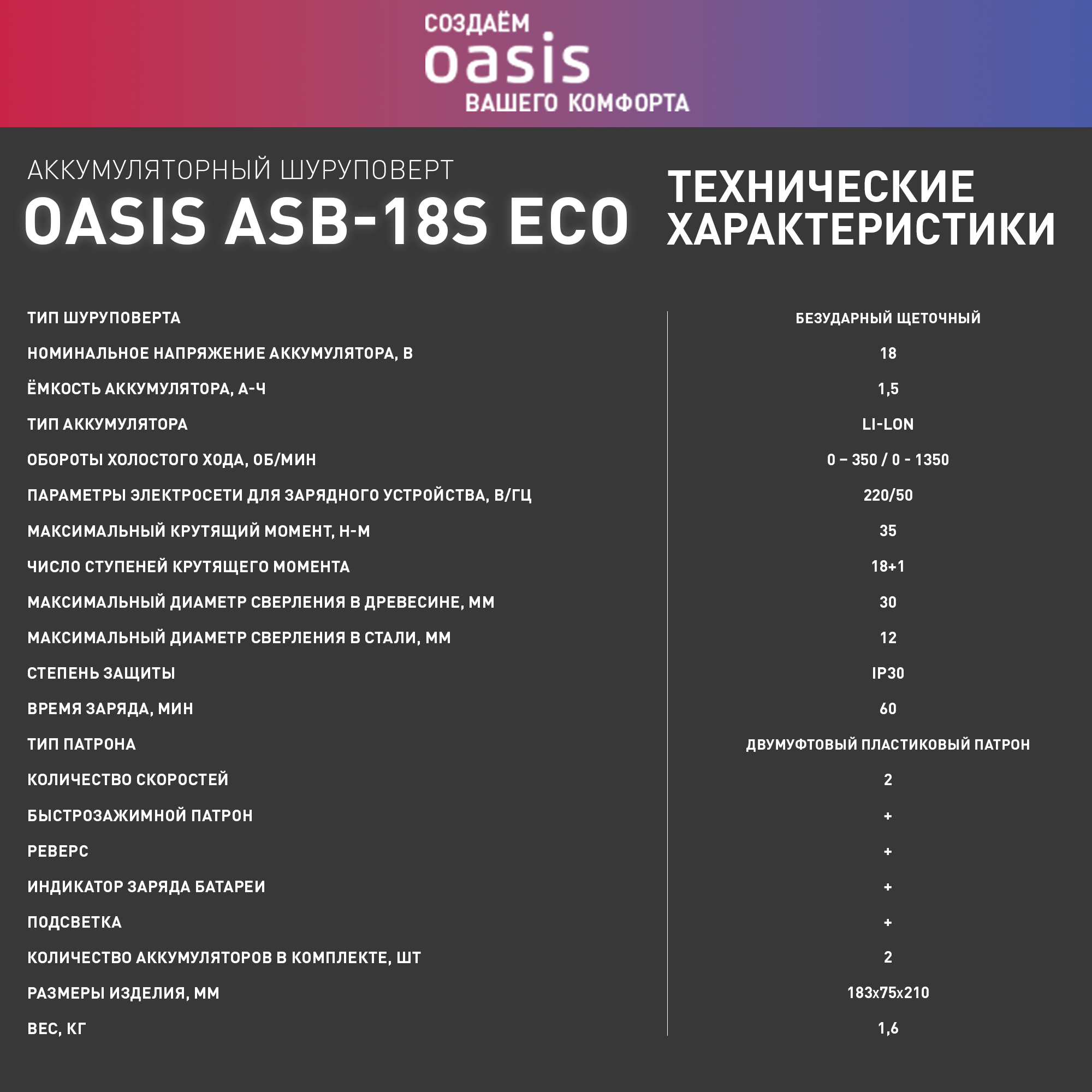 Аккумуляторная дрель-шуруповерт Oasis ASB-18S Eco