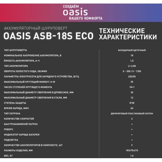 Oasis Asb-18s Eco Аккумуляторный шуруповёрт .