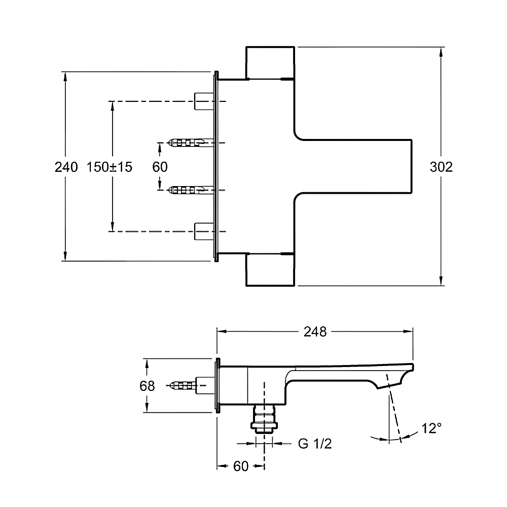 Смеситель STANCE Jacob Delafon E9103-CP для ванны/душа, термостатический, настенный интересное: