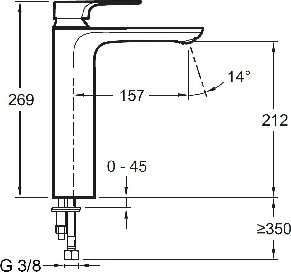Смеситель Jacob Delafon ALEO+ для умывальника, высокий излив 212 мм, без донного клапана E72336-CP