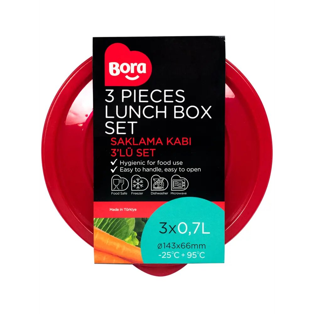 Контейнер круглый 3 шт Bora 0.7 л пластик цвет красный интересное:
