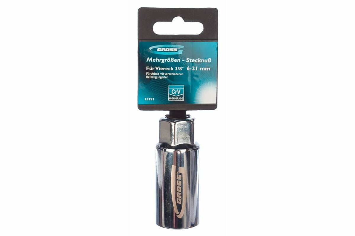 Gross головка торцевая многоразмерная CrV (6-21мм) под квадрат 3/8", CrV, хромир. 13191