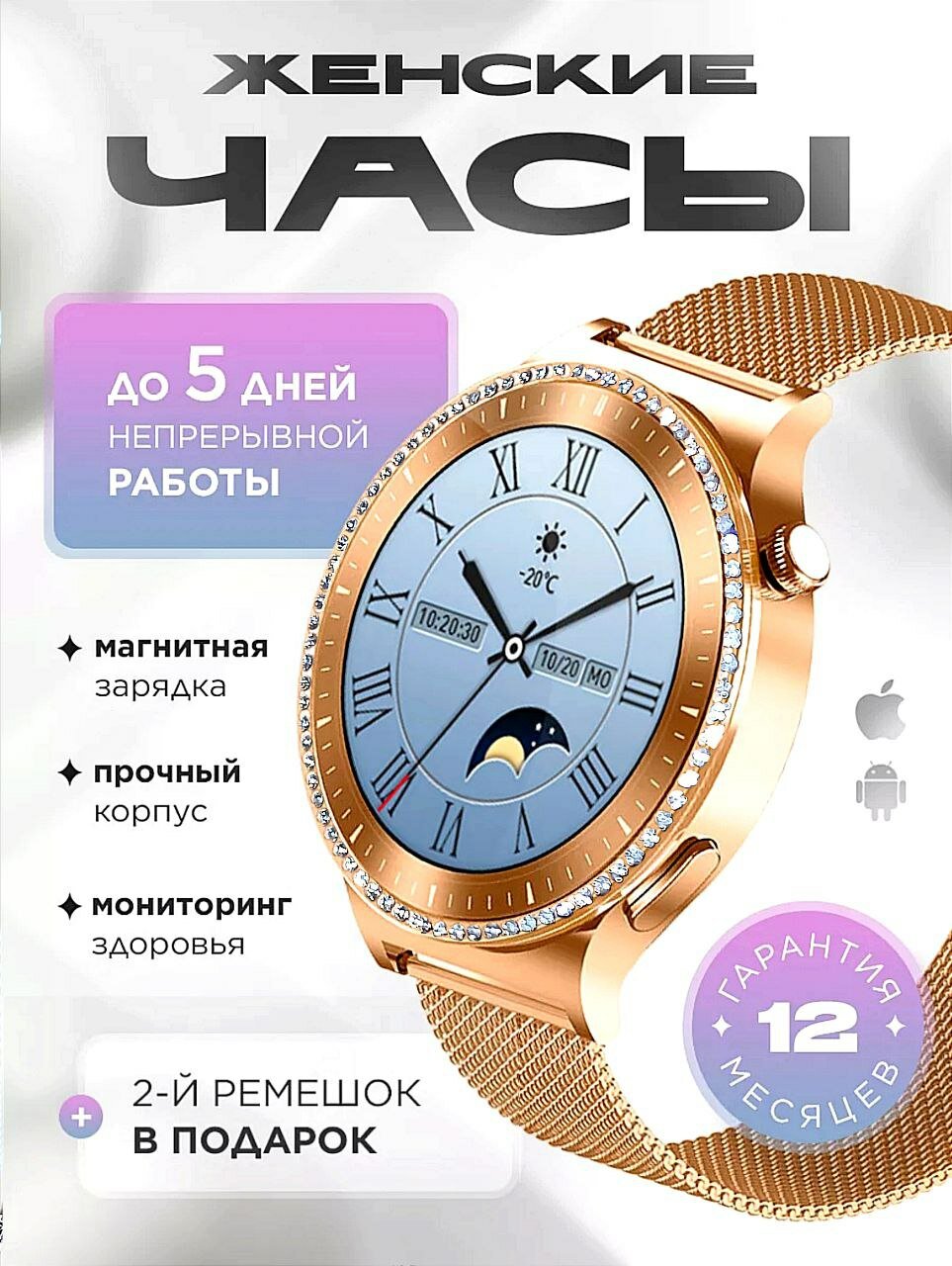 | Плюсы: | Стильные, 2 ремешка в комплекте, милая коробка |