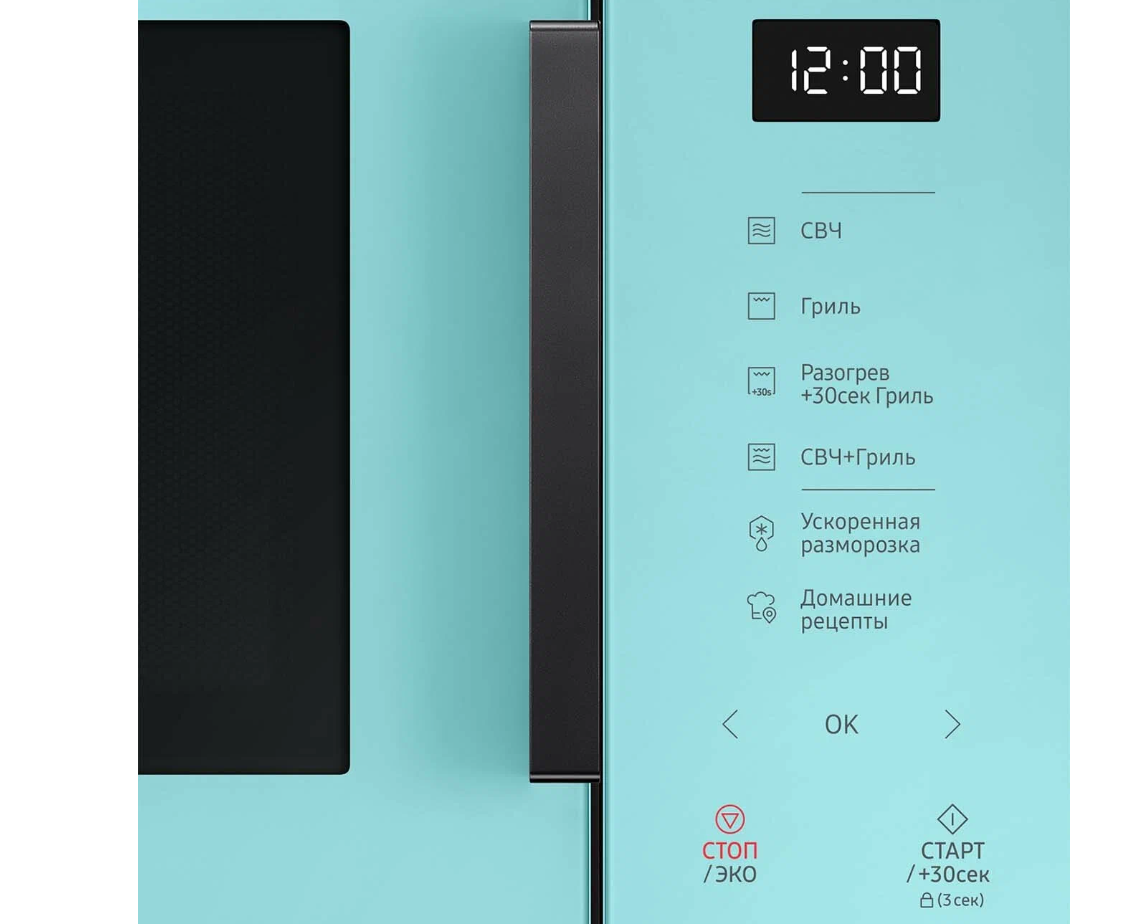 Микроволновая печь SAMSUNG 23L GRILL MG23T5018AN/BW, свежий мятный