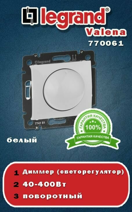 Original Диммер Legrand Регулирование и управление поворотом рукоятки - Valena - 40-400 Вт/40-400 ВА - белый