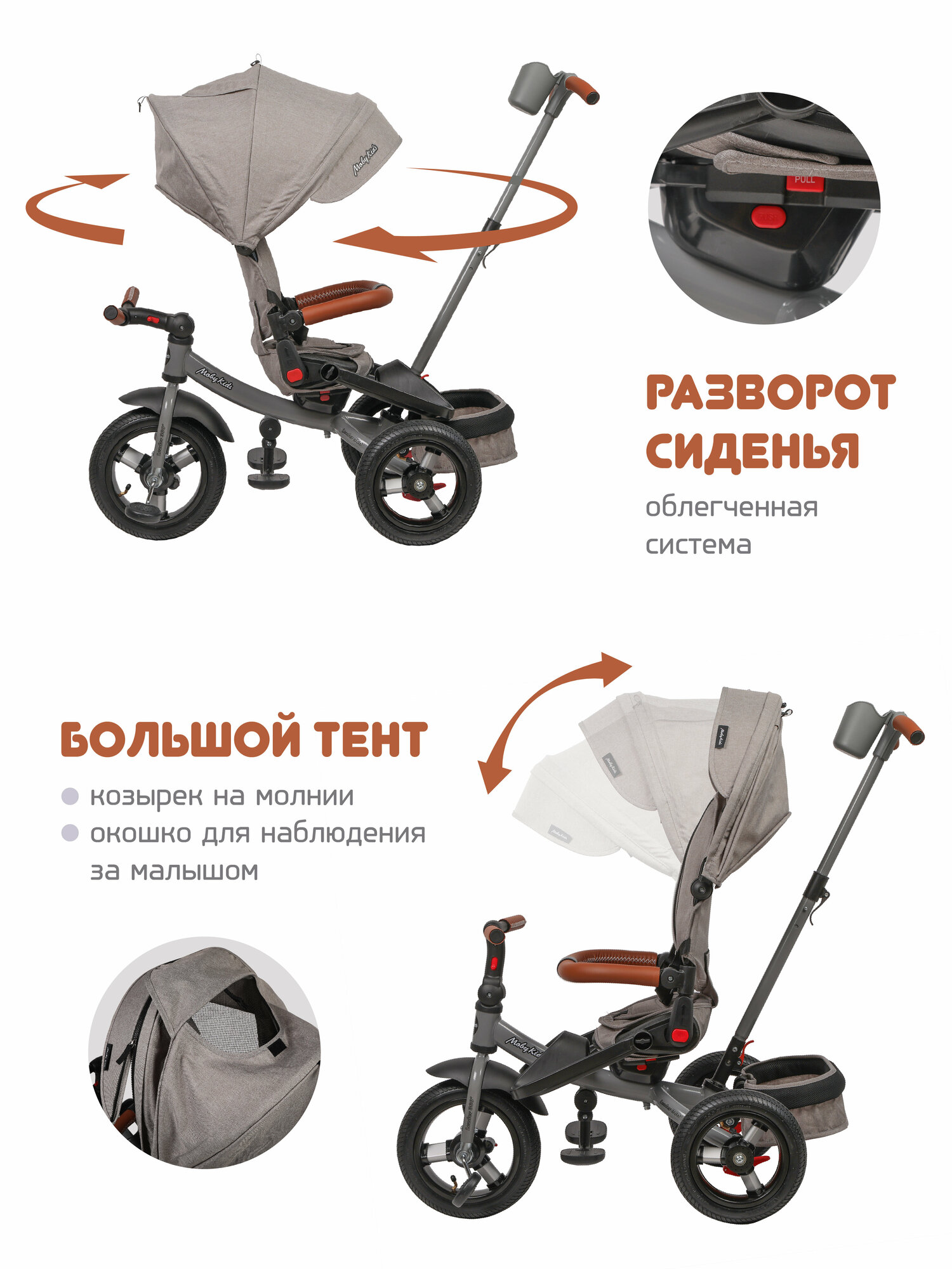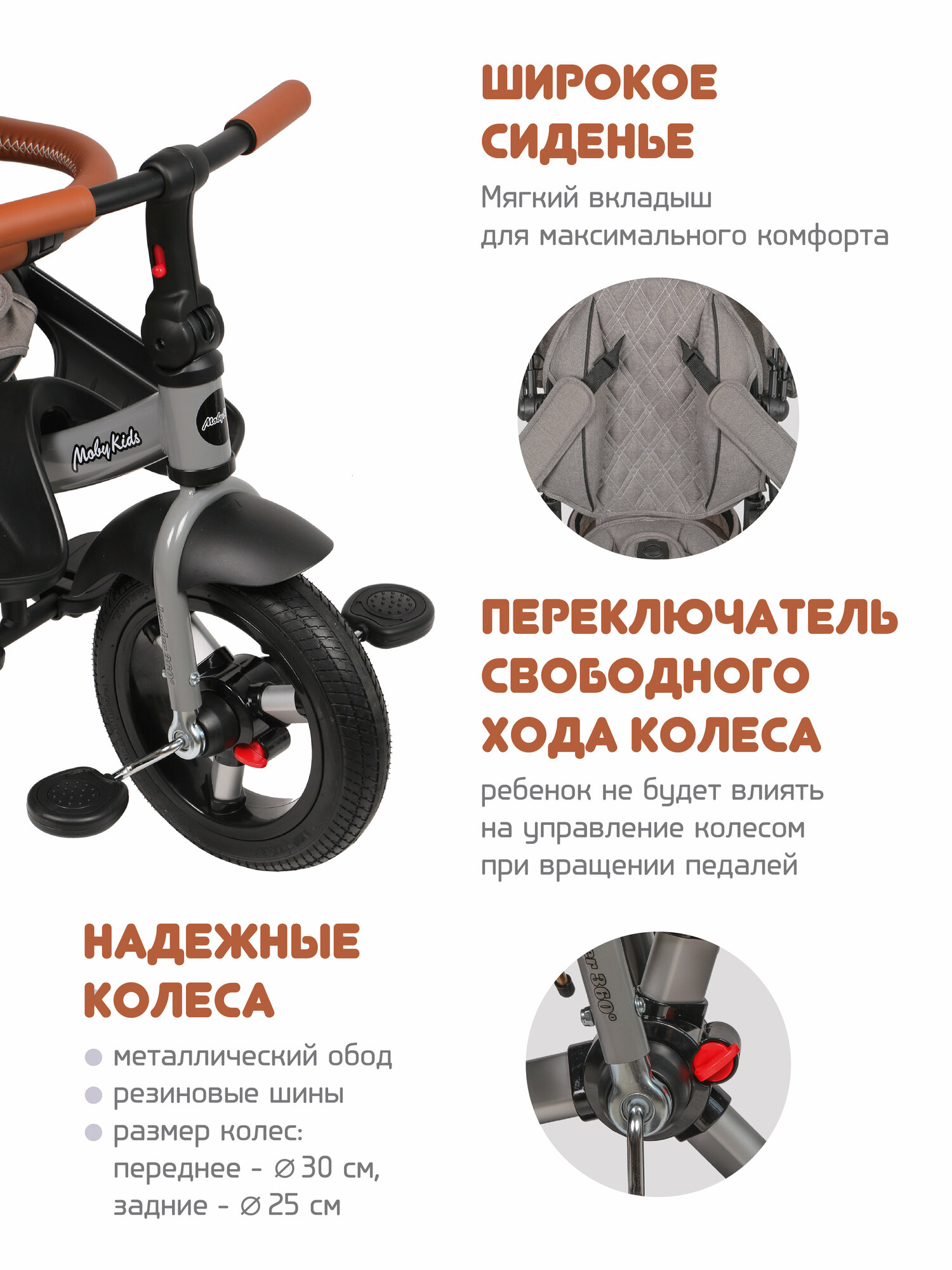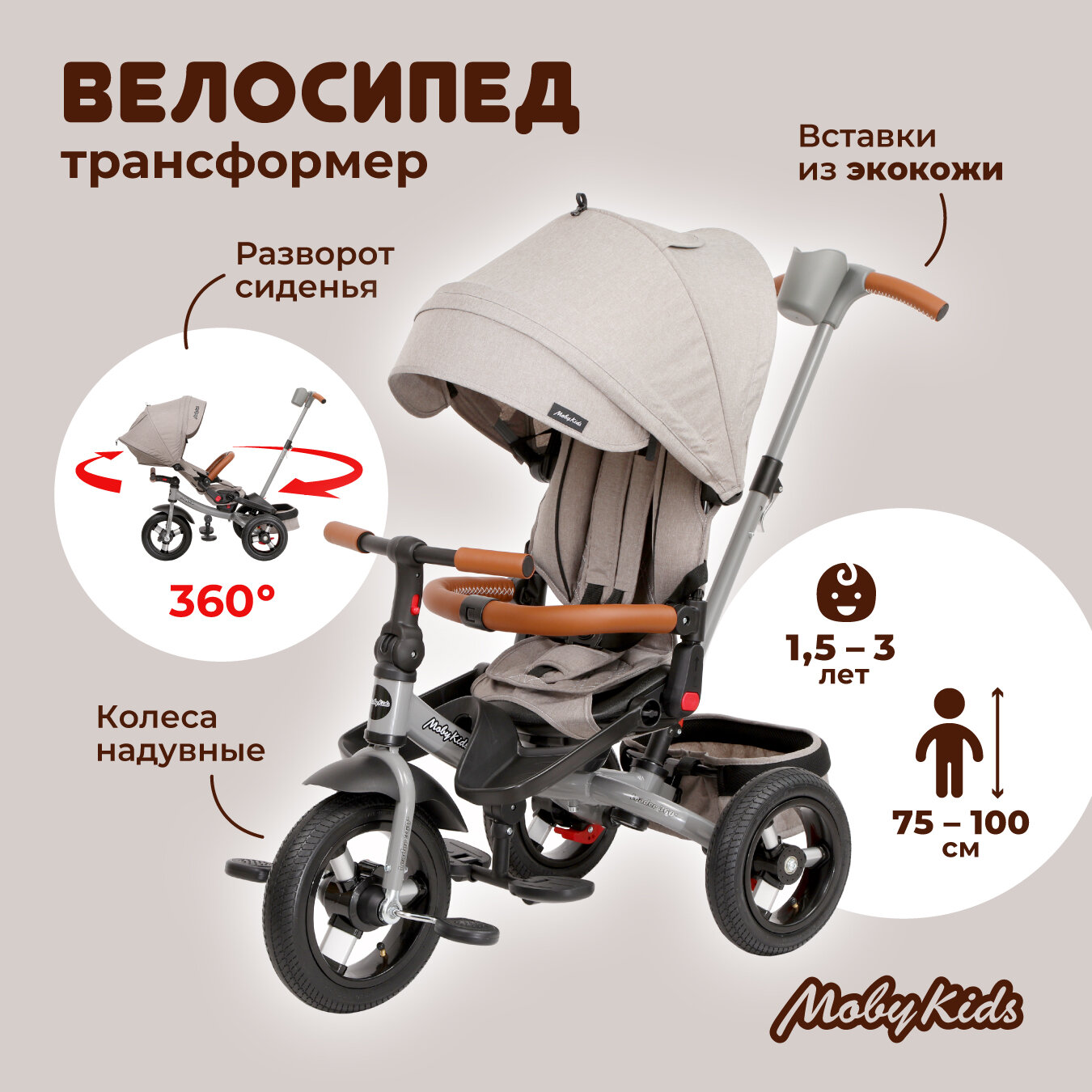 Велосипед трехколесный Moby Kids Leader 360, колеса 12 и 10 дюймов, AIR, серый, экокожа (641487)