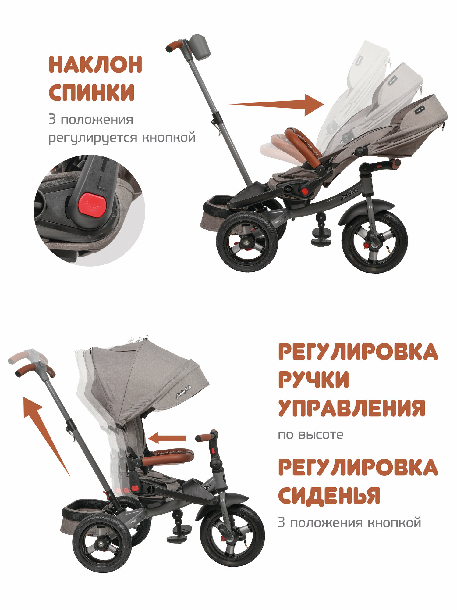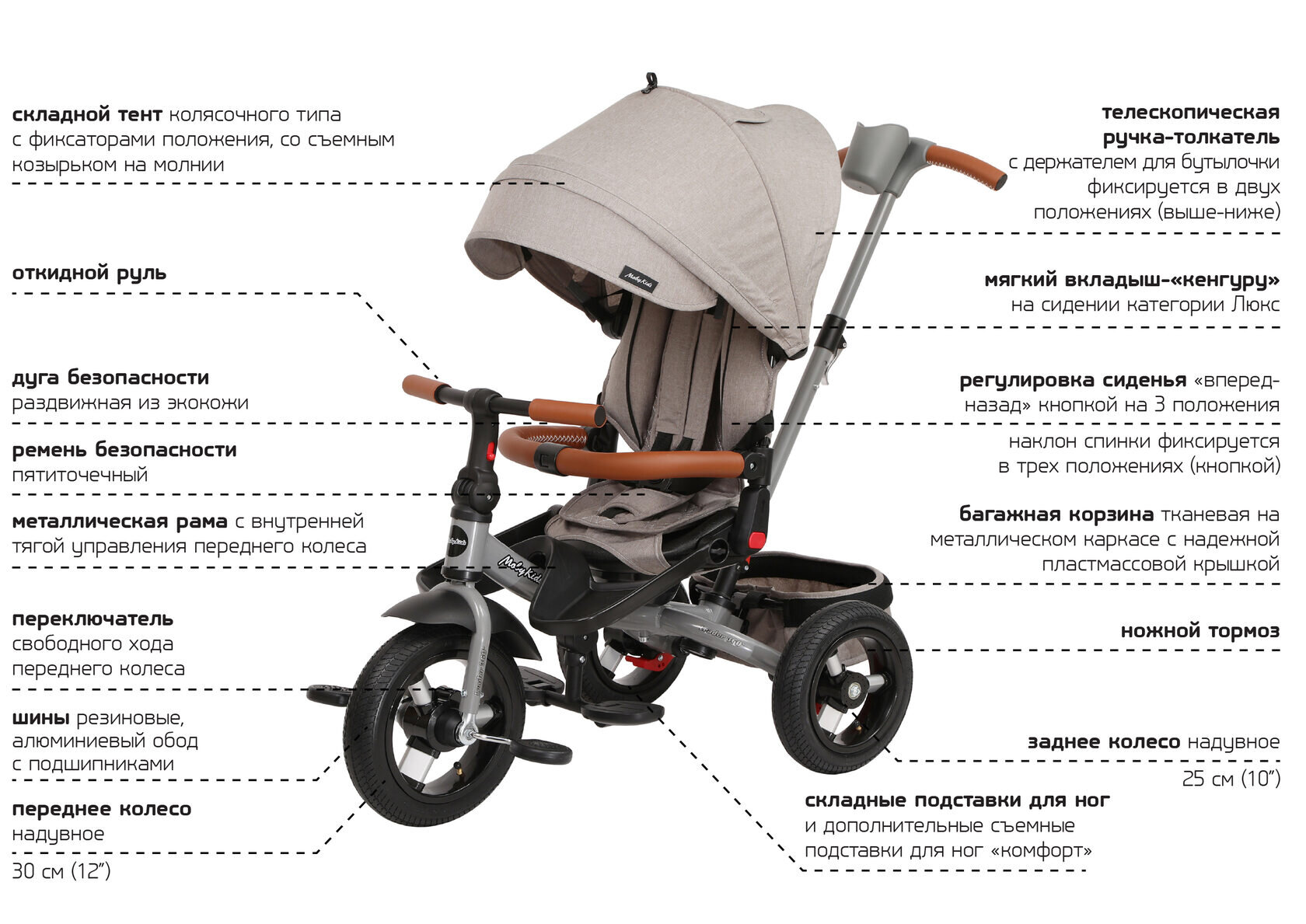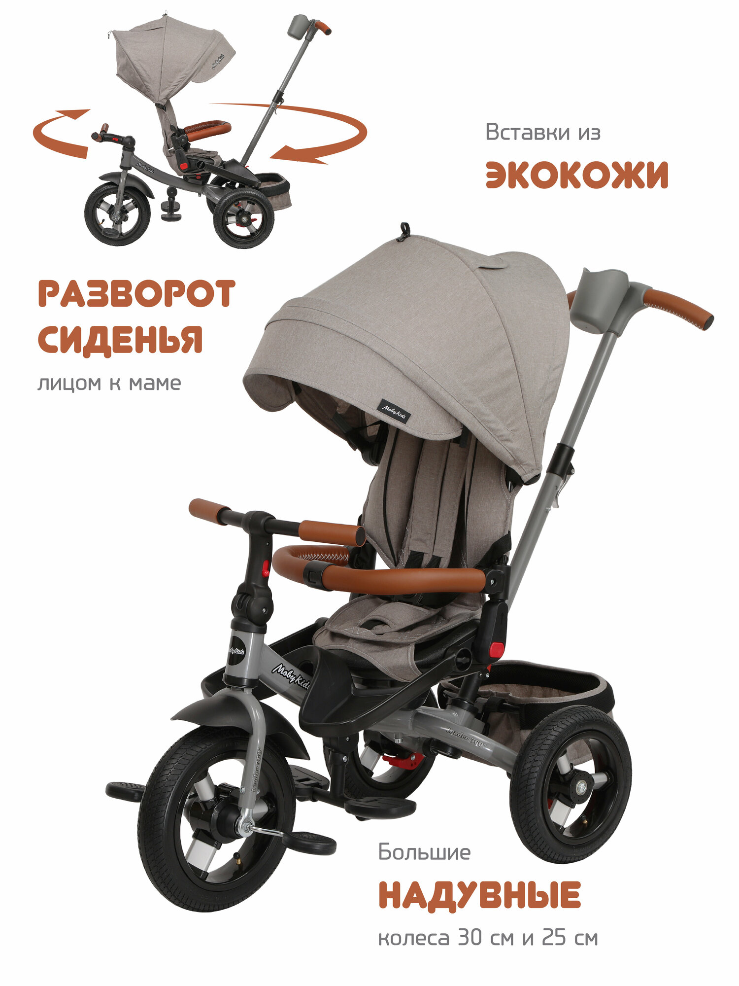 Велосипед трехколесный Moby Kids Leader 360, колеса 12 и 10 дюймов, AIR, серый, экокожа (641487)